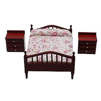 1:12 Dollhouse Miniature Mini Furniture Double Bed and Bedside Table Set