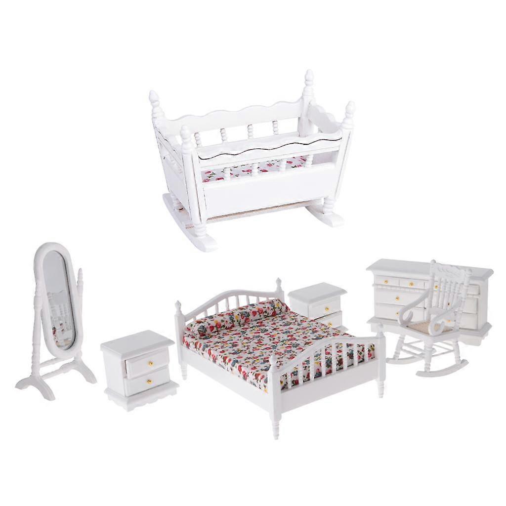 1/12 Dollhouse Miniature Furniture Accessories Wood European Retro Bedroom Set 7 Pcs