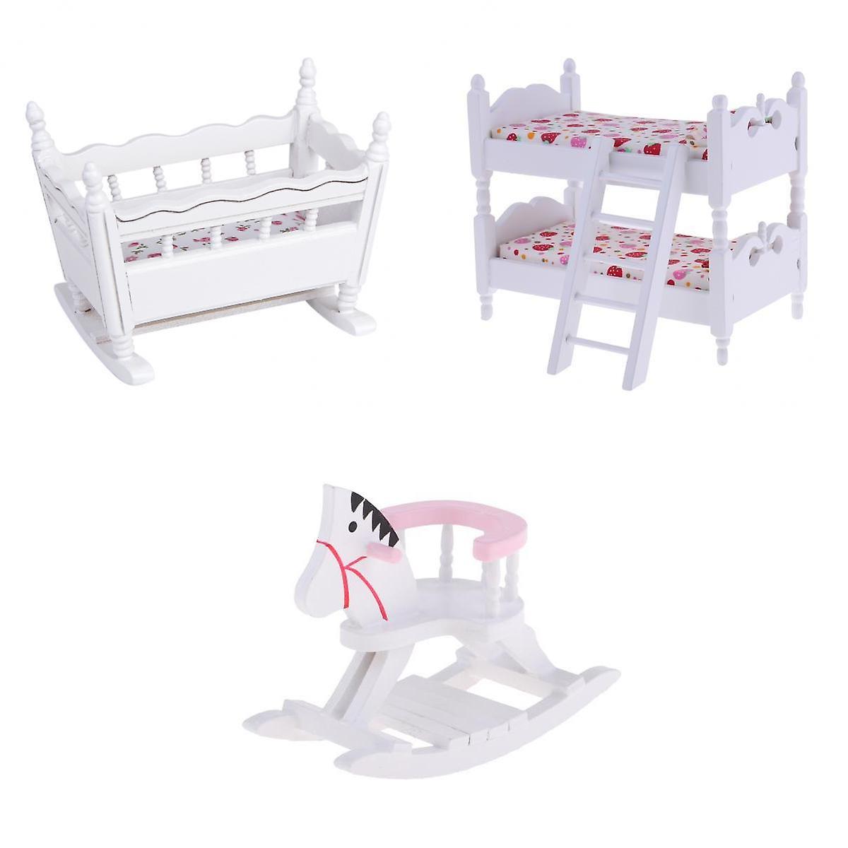 1/12 Dollhouse Miniature Furniture Bunk Bed Cradle Rocking Horse Set Bedroom