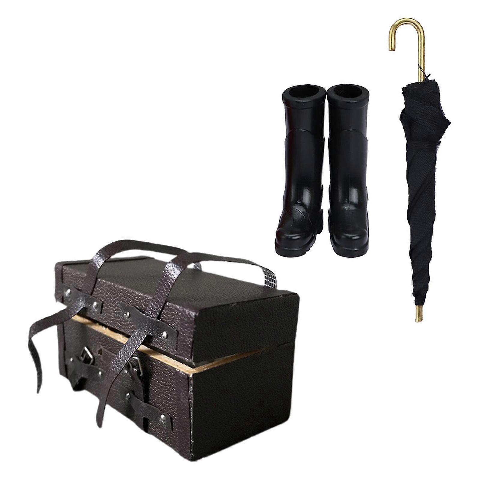 1/12 Dollhouse Luggage Box Suitcase Rain Boot and Umbrella Pretend Accessories