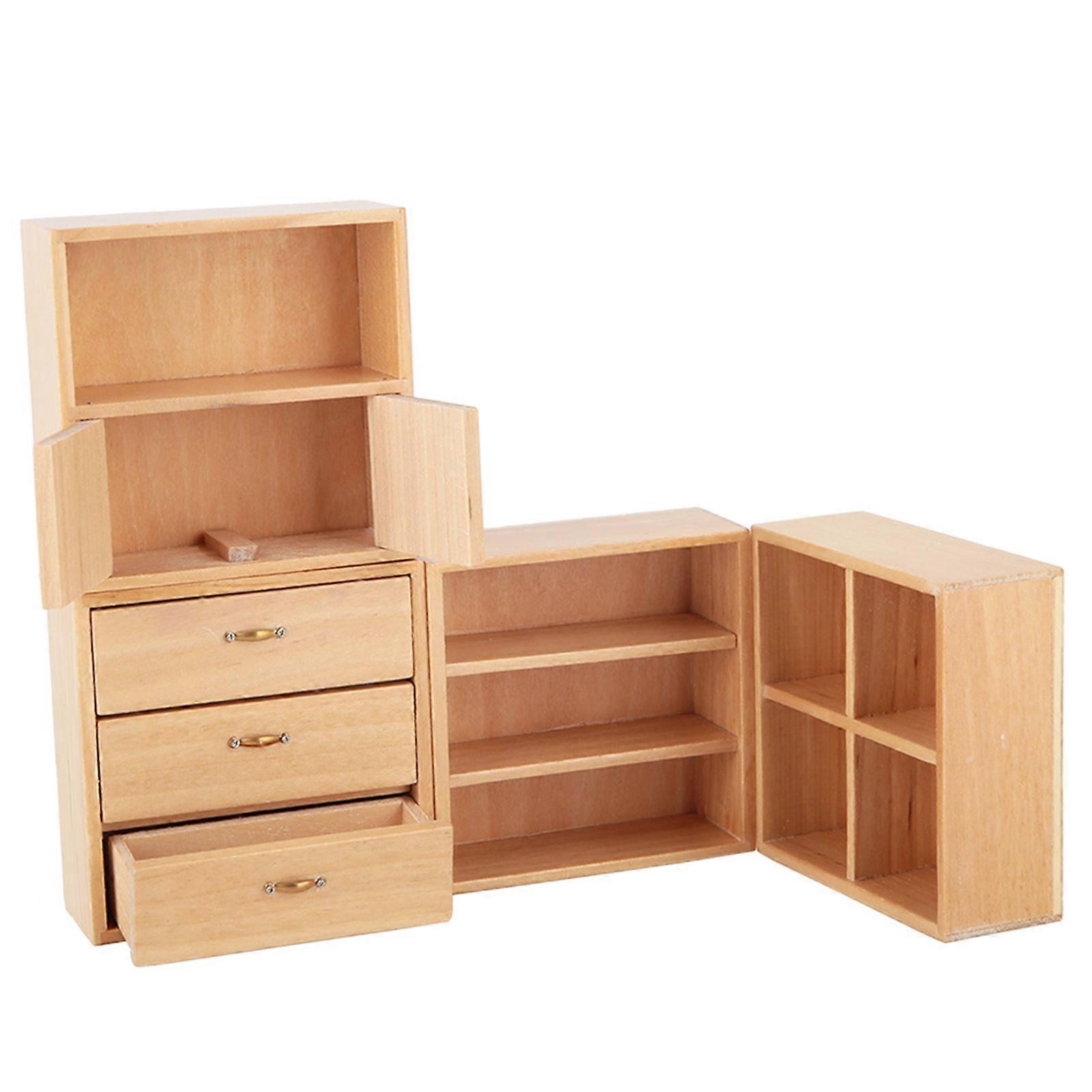 1:12 Mini Wood Cabinet Furniture Living Room Bedroom Cabinet Unit for Dollhouse(Burlywood)