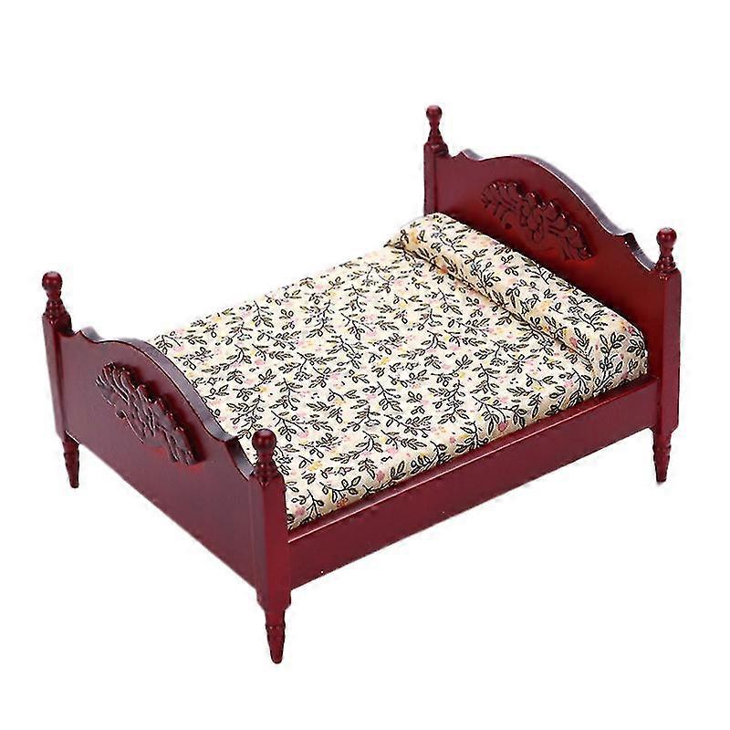 1:12 Mini Double Bed Model Life Scene Miniature Accessories Bedroom Doll House Furniture Red