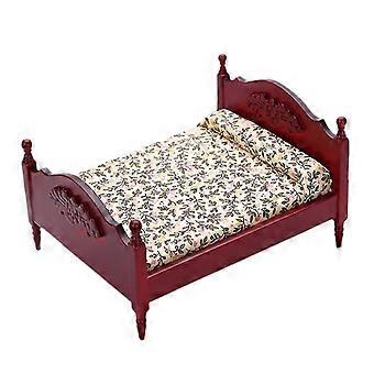 1:12 Mini Double Bed Model Life Scene Miniature Accessories Bedroom Doll House Furniture Red