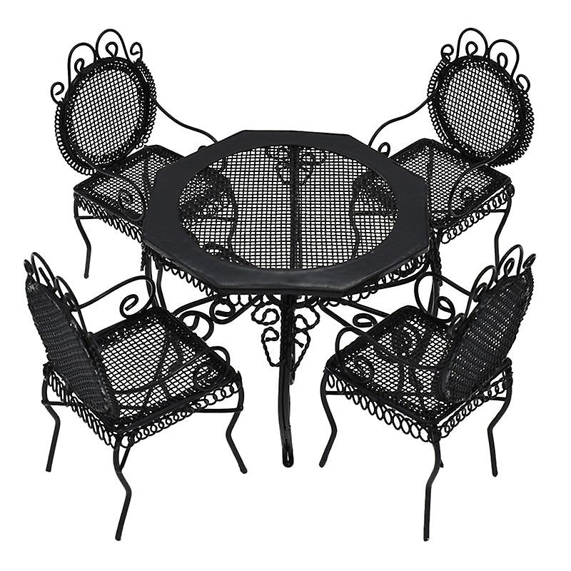1:12 Miniature Garden Furniture Set Octagonal Table And Chairs Dollhouse Patio Outdoor Accessories