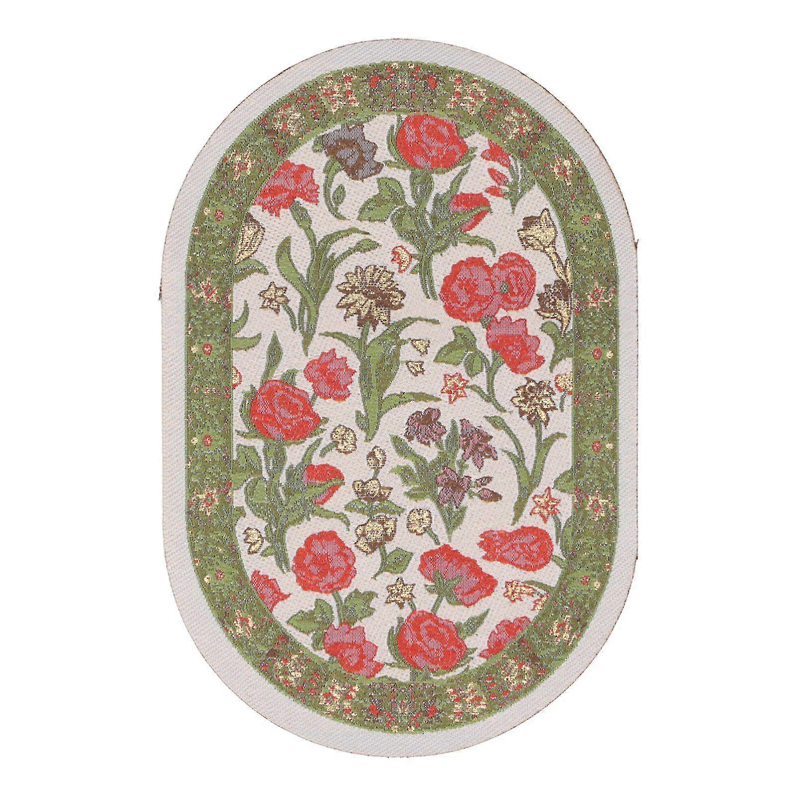 1/12 Miniature Rug Mini Vintage Woven Carpet Dollhouse Decoration Accessories Oval B01 Green Leaf Flower
