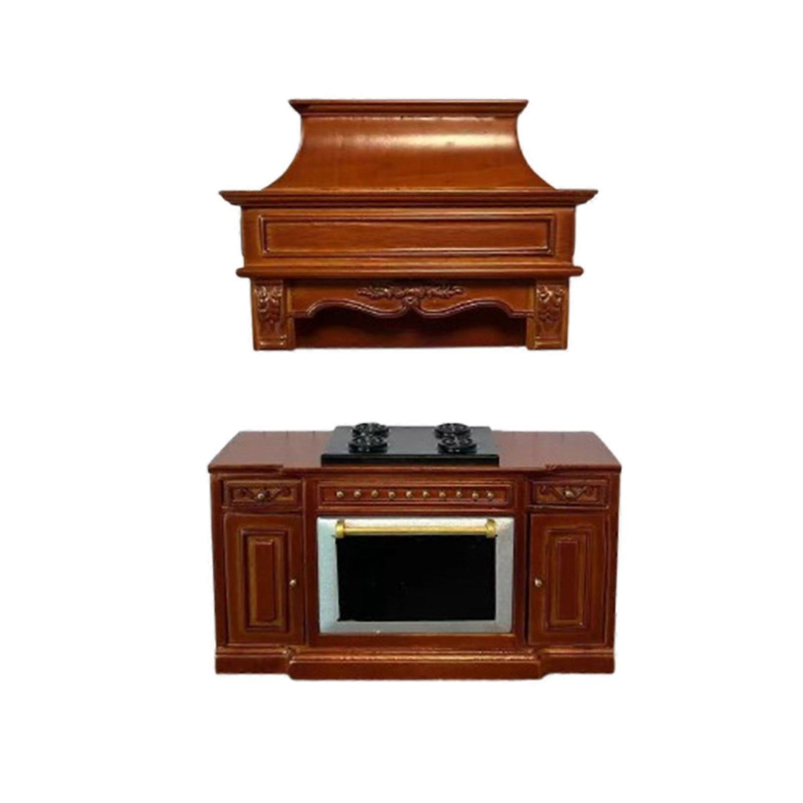 1:12 Miniature Furniture White Walnut Stove Oven Cooker Hood Kitchen Set Ob119Jp