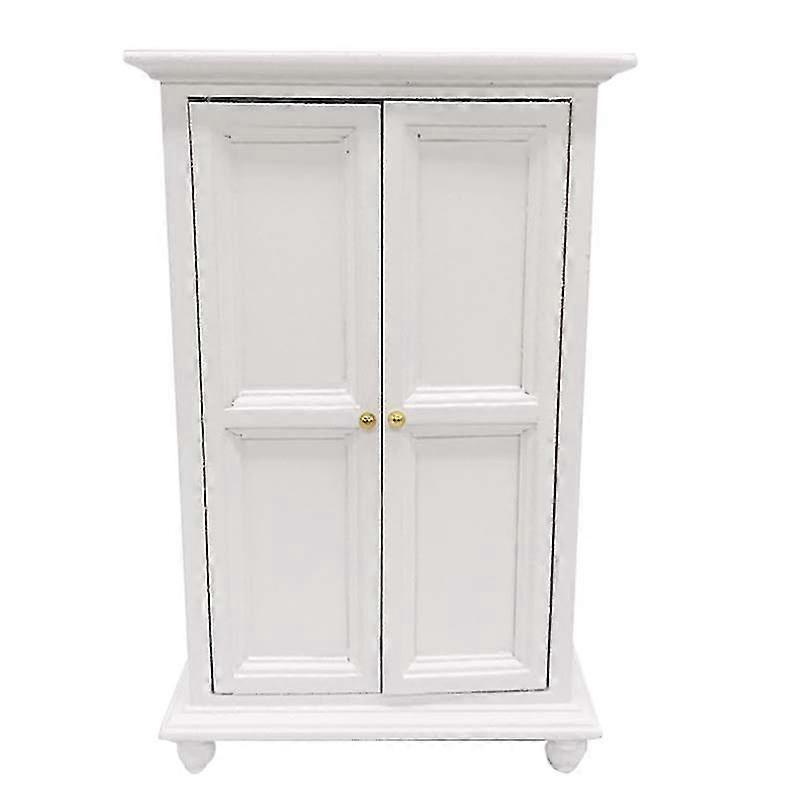 1:12 Miniature Furniture - White Wooden Wardrobe Cabinet, Realistic Model, European Style