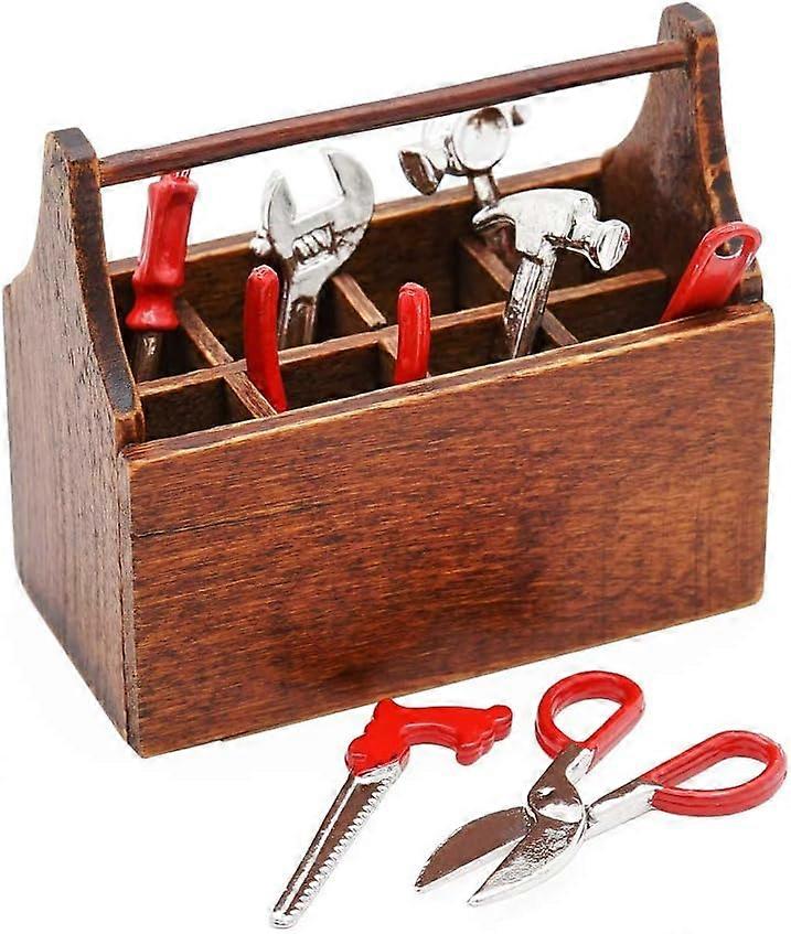 1/12 Miniature Wooden Tool Box with Tools 8 Pieces Dollhouse Accessories