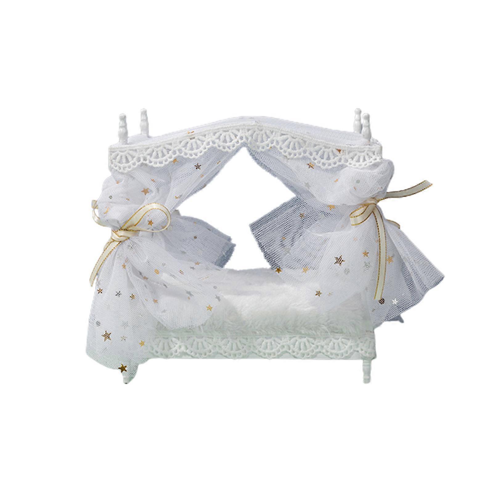1:12 Model Princess Bed Bedroom Furniture Wooden Single Bed Micro Landscape Dollhouse Decor Ball Joint Dolls Accessory White