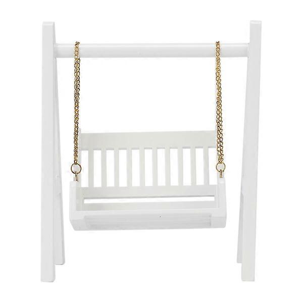 1/12 Dollhouse swing with gold chain White Miniature Wooden Swing Exquisite Mini Dollhouse Decoration Tools