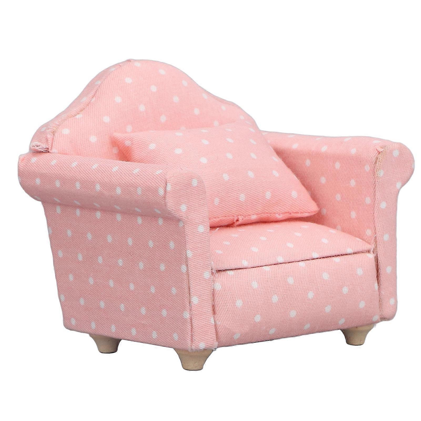 1:12 Dollhouse Mini Sofa, High Simulation Armchair, Pink and White Polka Dot, 1:12 Dollhouse Miniature Furniture