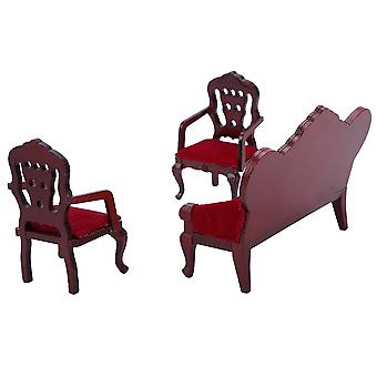 1:12 Red Wooden Flannelette Sofa Set for Doll House 14x4.5x9.8cm