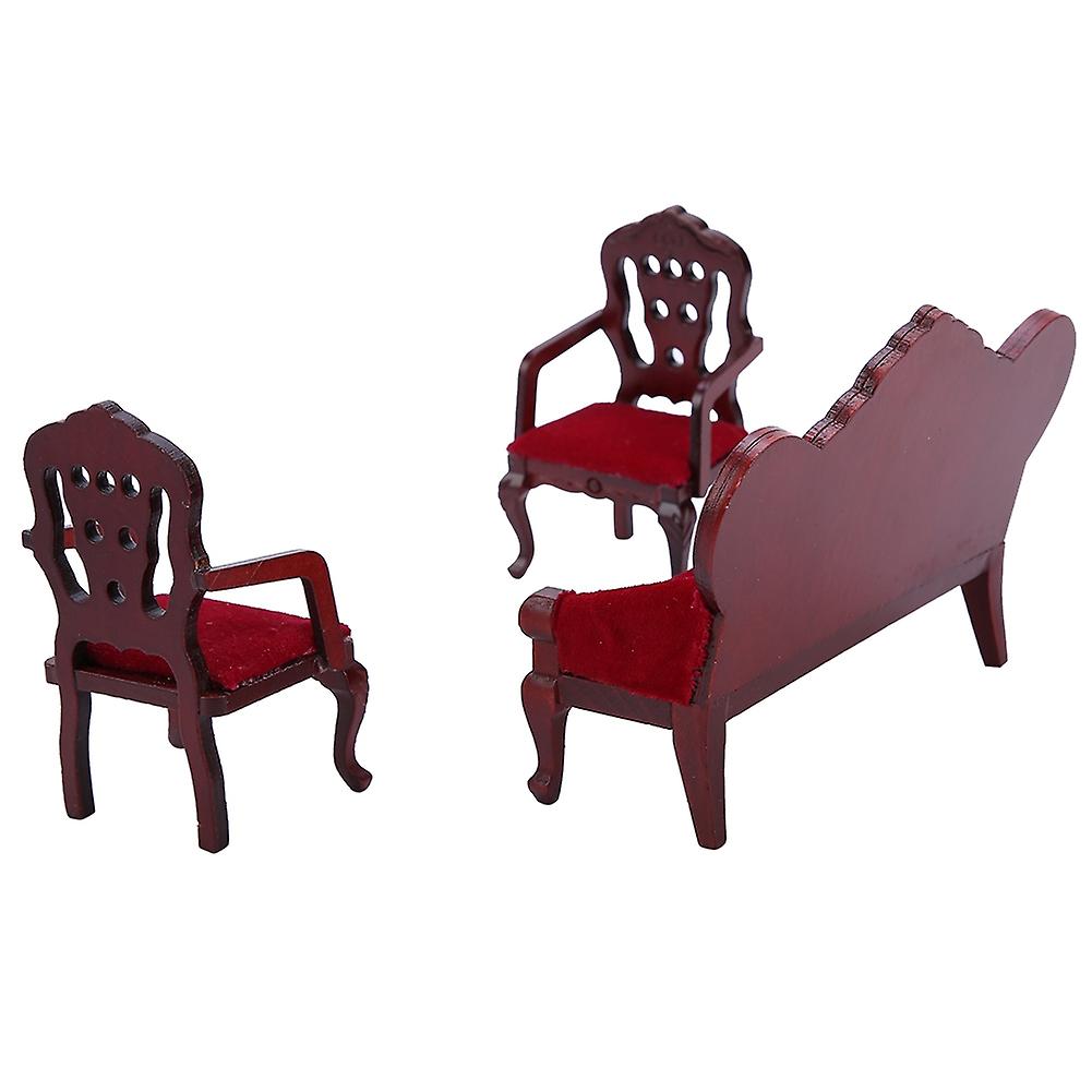 1:12 Doll Simulation House Miniatures Living Room Sofa Couch Furniture Accessories Features:  1. Red wooden flannelette sofa, bring you back to that glamorous era.  2. Lifelike shape, exquisite workmanship. 3. Suitable for 1: 12 simulation doll house. 4. Bring more fun to your DIY. 5. This set of furniture makes your doll house classical. Specification: Condition: Item Type: Doll House Accessories Material: Wood Application: For 1 : 12 Doll House Sofa Size: 14 * 4.5 * 9.8cm / 5.5 * 1.8 * 3.9in Chair Size: 5.5 * 4.3 * 9cm / 2.2 * 1.7 * 3.5in Weight: 145g Package List: 1 * Sofa 2 * Chair