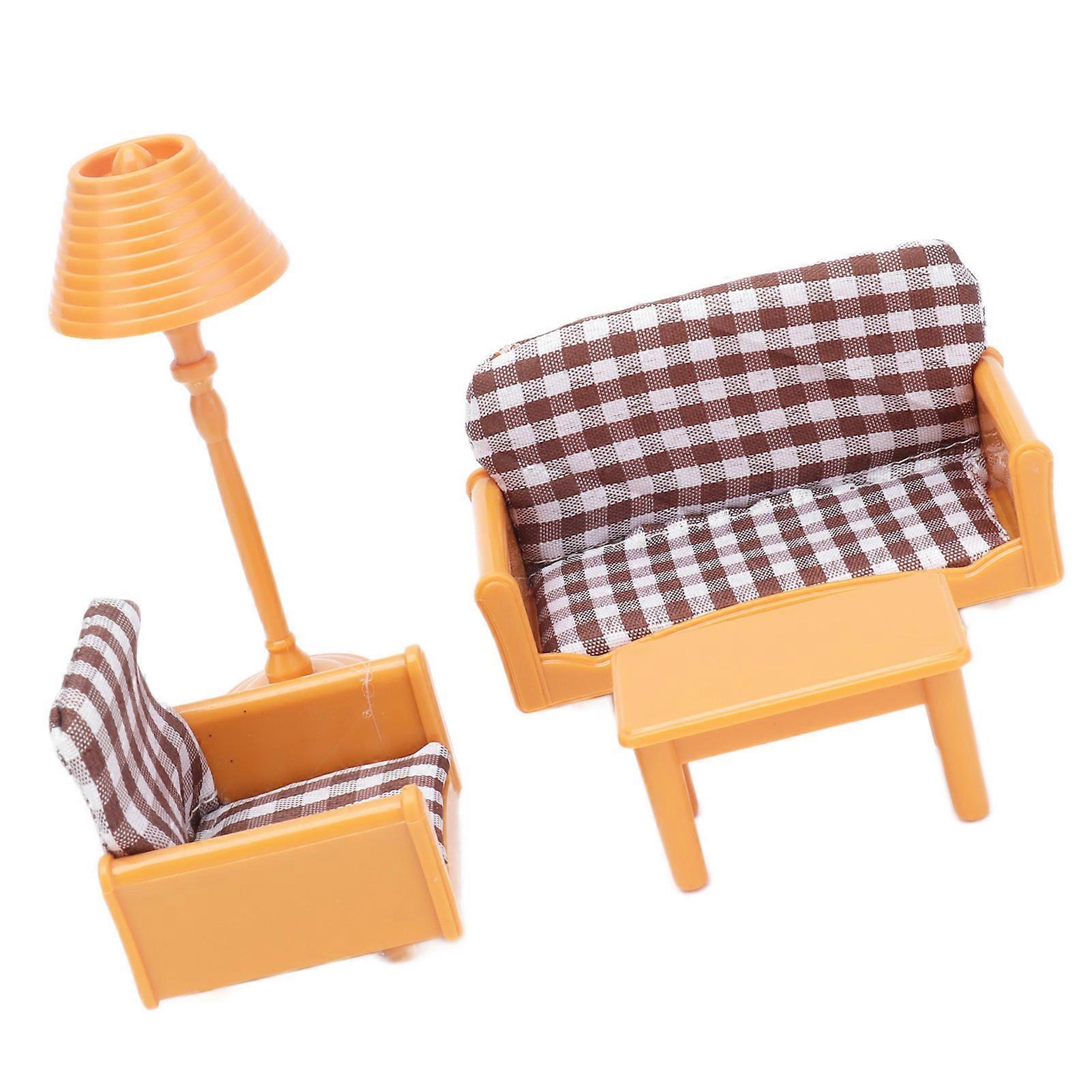 1:12 Miniature Living Room Furniture Set Double Single Sofa Lamp