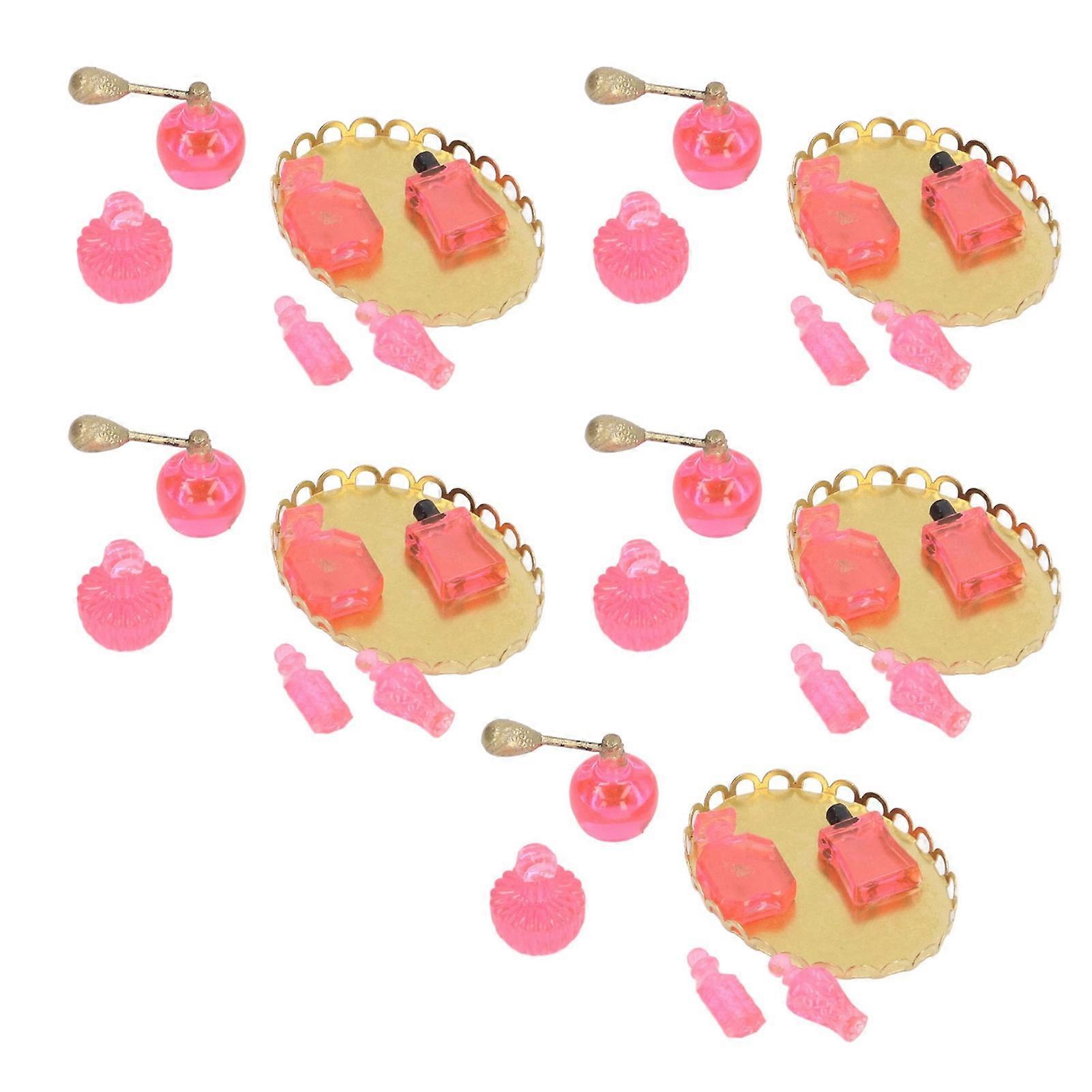 1:12 1:6 Miniature Fragrance Model Golden Tray Dollhouse Perfume Bottles for DIY Decoration Bright Pink