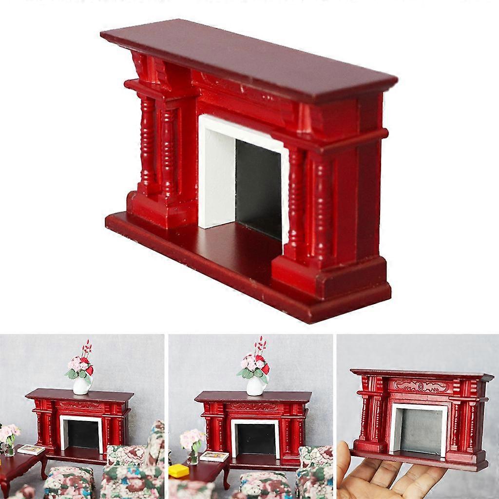 1/12 Dolls House Miniature Fireplace Vintage Style Red Wood Freestanding Simulation Fireplace for Dollhouse Furniture Life Scene Accessory Ornaments