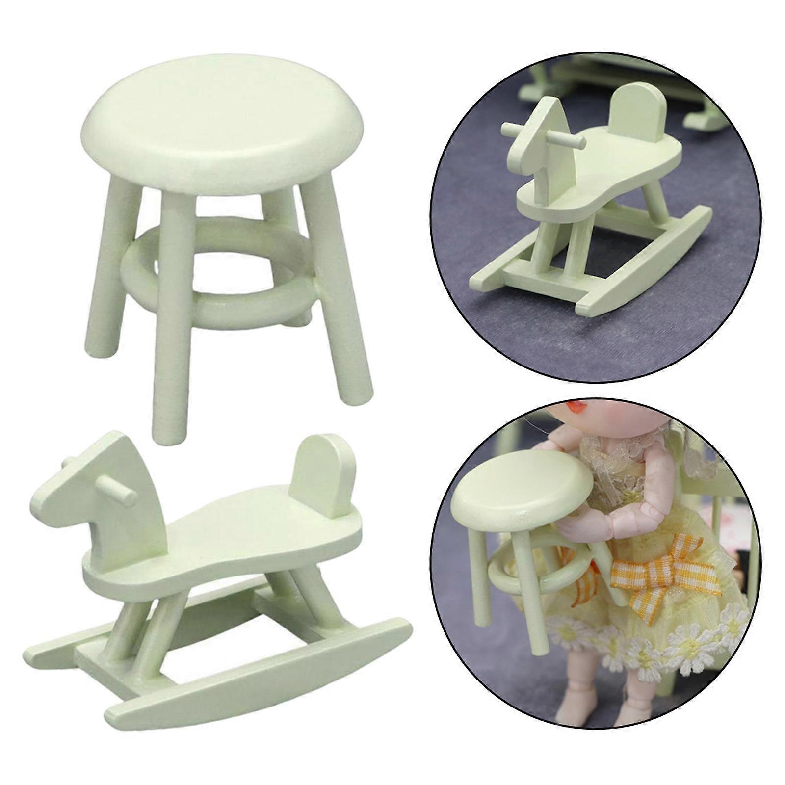 Mini 1/12 Doll House Wooden Horse Round Stool Furniture Scenery Decoration