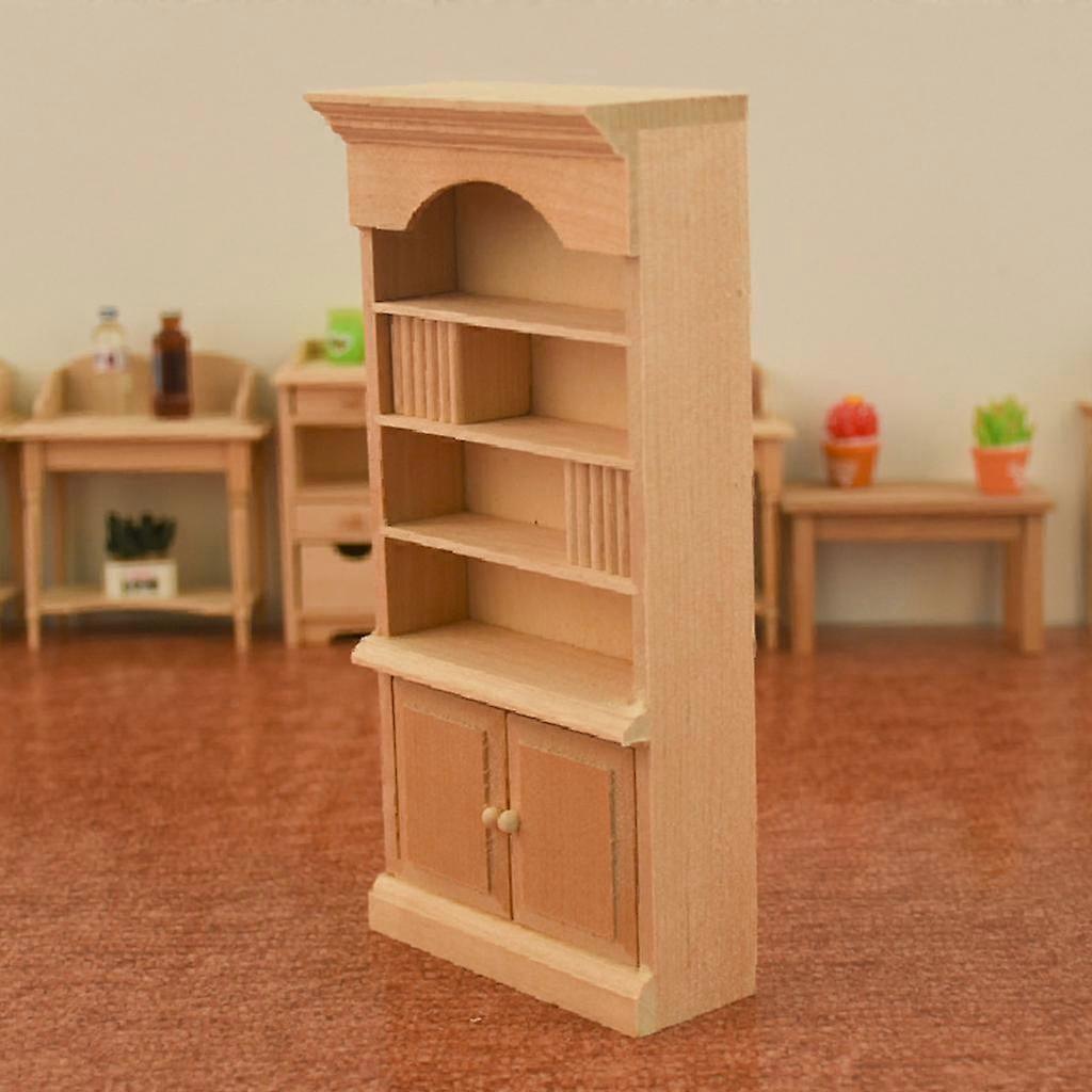 1:12 Wood Doll House Bookcase Display Cabinet Showcase Bookshelf Furniture Accessories for Miniature Study Room Decor