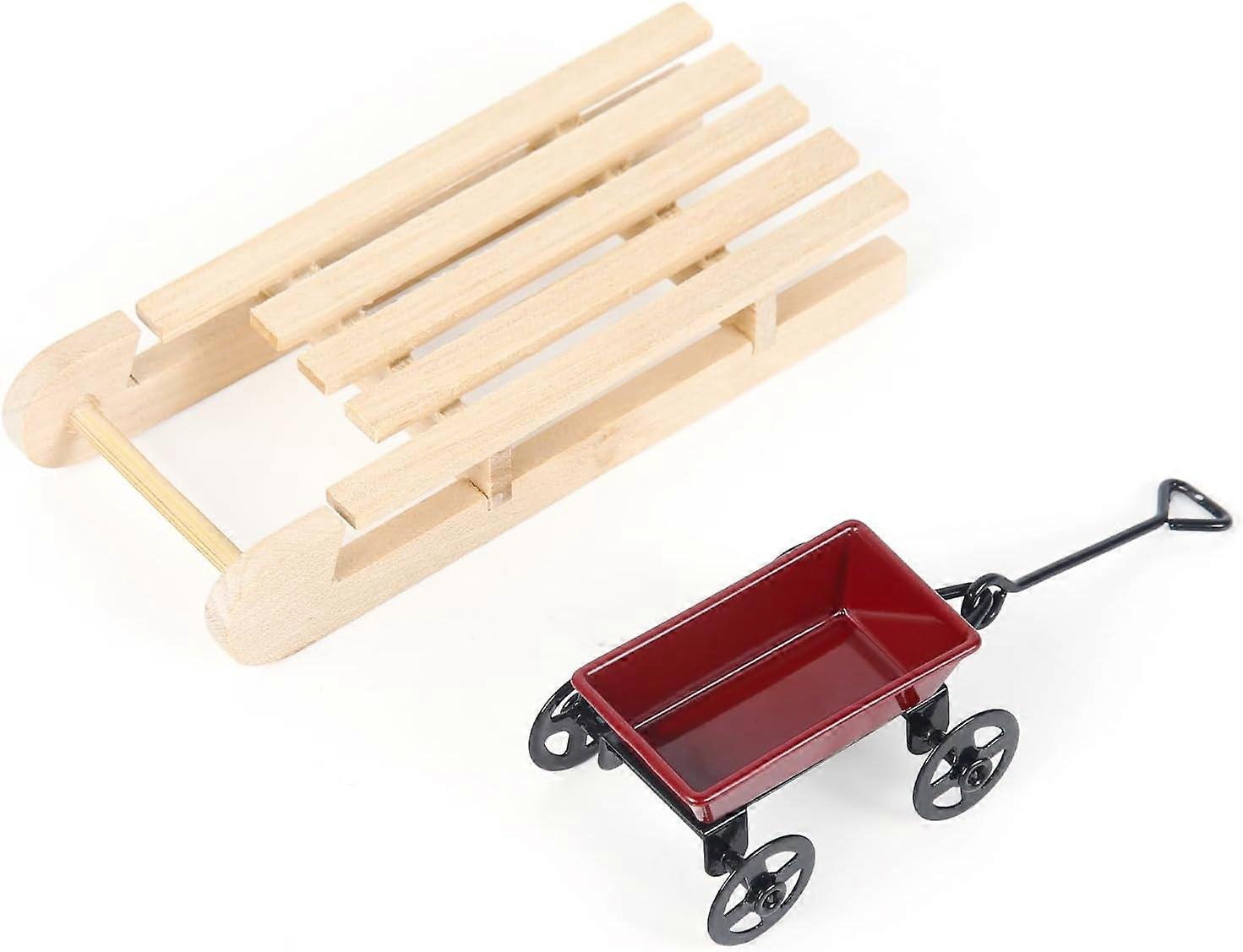 Miniature Wooden Sledge,1/12 Gnome Sledge, Wooden Dollhouse Accessories, Christmas, Miniature Handcart, Miniature Accessories as a Gift for Children