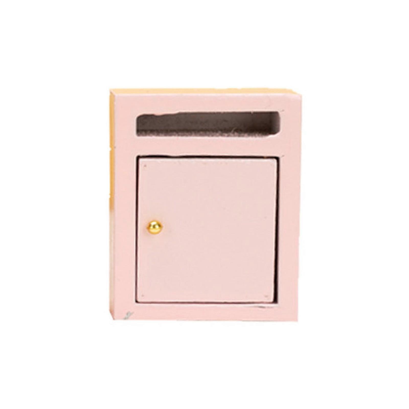Dolls House Wood Mailbox 1:12 Christmas Dollhouses Model Mini Post Box Miniature Wood Furniture Crafts Decorations Pink