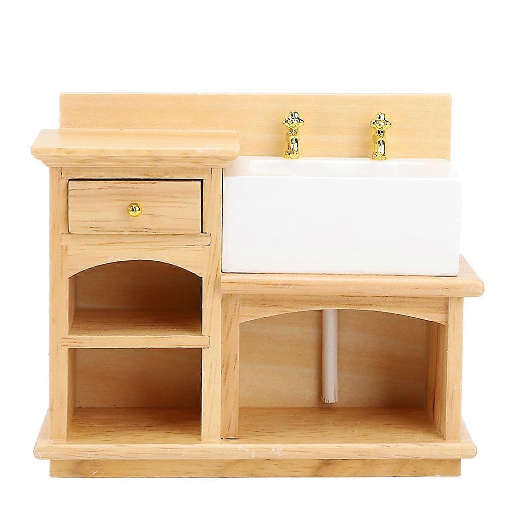 1:12 Mini Dollhouse Accessory Miniature Furniture Realistic Kitchen Sink Wooden Wash BasinSink