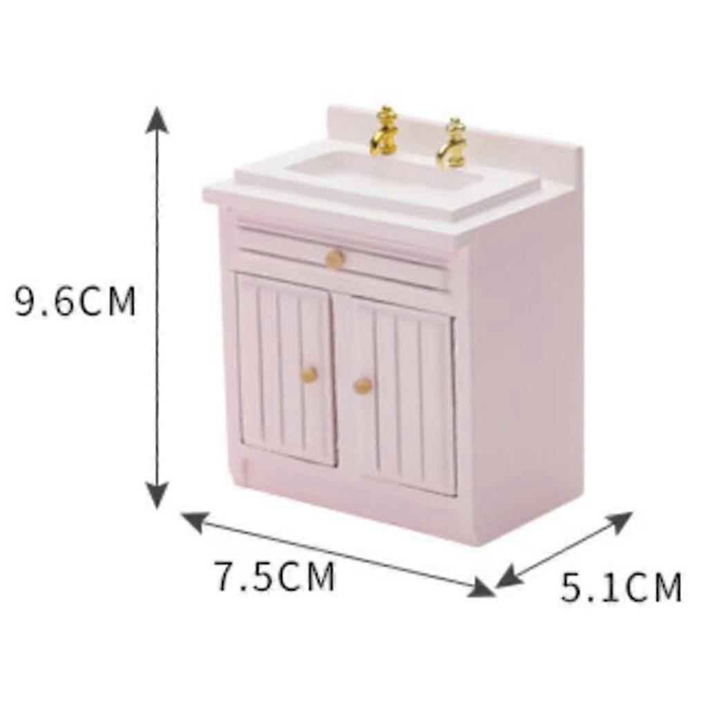 Dollhouse Pink Sink Unit with Cabinet Sink Modern Kitchen Furniture 1/12 Scale Doll House Decroation