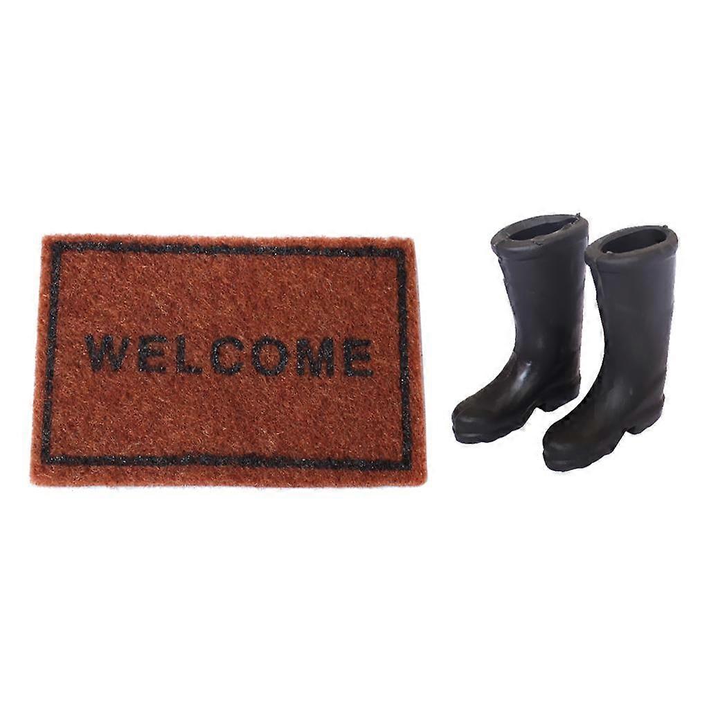 1/12 Dollhouse Furniture Miniature Rubber Rain Boots Home Garden Yard Accs+Rug Living Room Art Floor Decor Brown