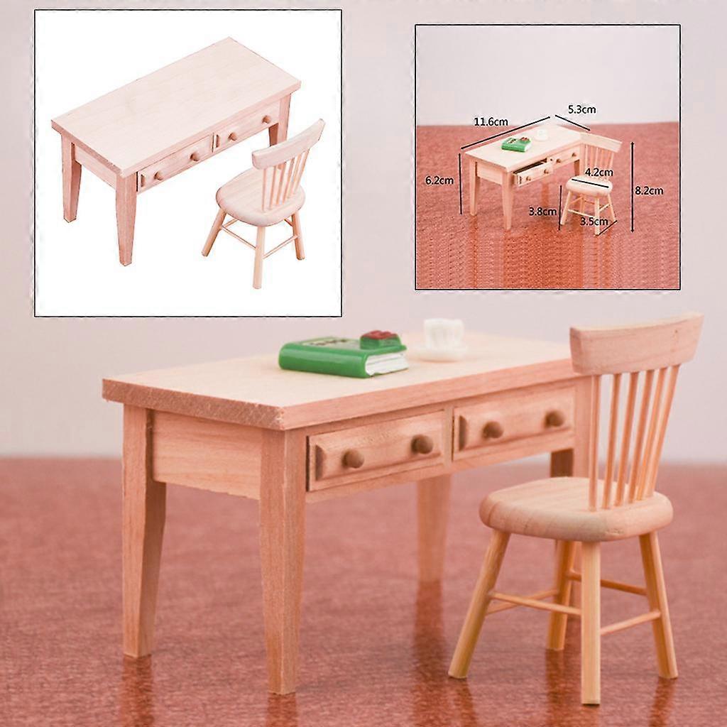 1/12 Miniatures Unpainted Table And Chair Set Furniture Room DIY Ornaments
