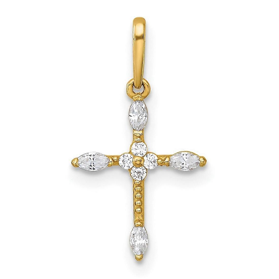 11.5mm 14k Solid Yellow Gold Polished and Beaded Fancy Cubic Zirconia Religious Faith Cross Pendant Necklace-Pendant for