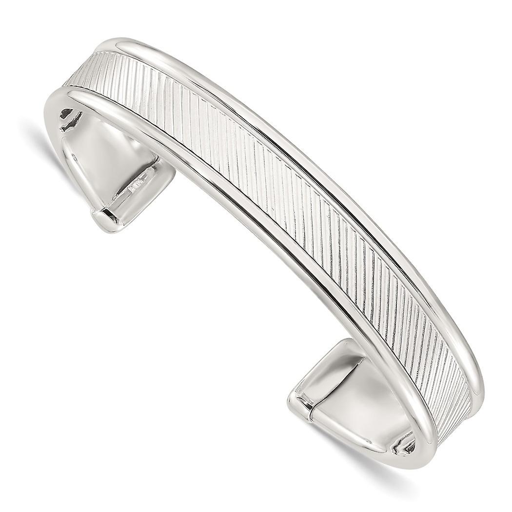 11.5mm 925 Sterling Silver Polished-Silver Plated Textured Cuff Bangel Bracelet-Cuff-Bracelet for Women