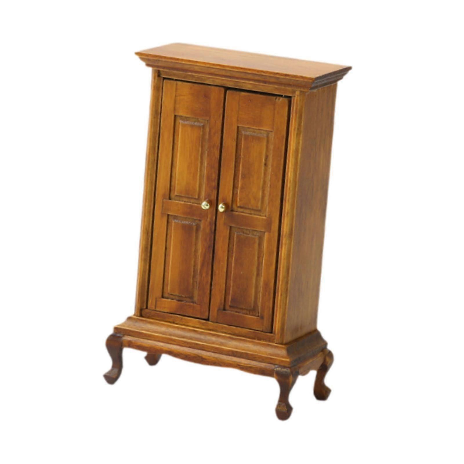 1/16 Dollhouse Double Door Cabinet for Role Life Scene Layout Handcraft Walnut color