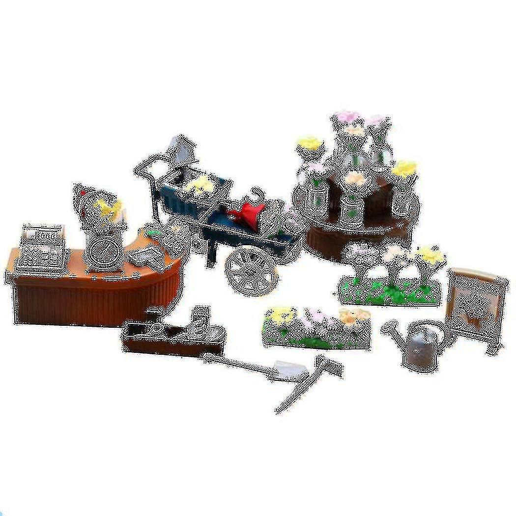 1:18 Mini Simulation Flower Shop Set Trolley -landscape Decoration Dollhouse Children Play House To