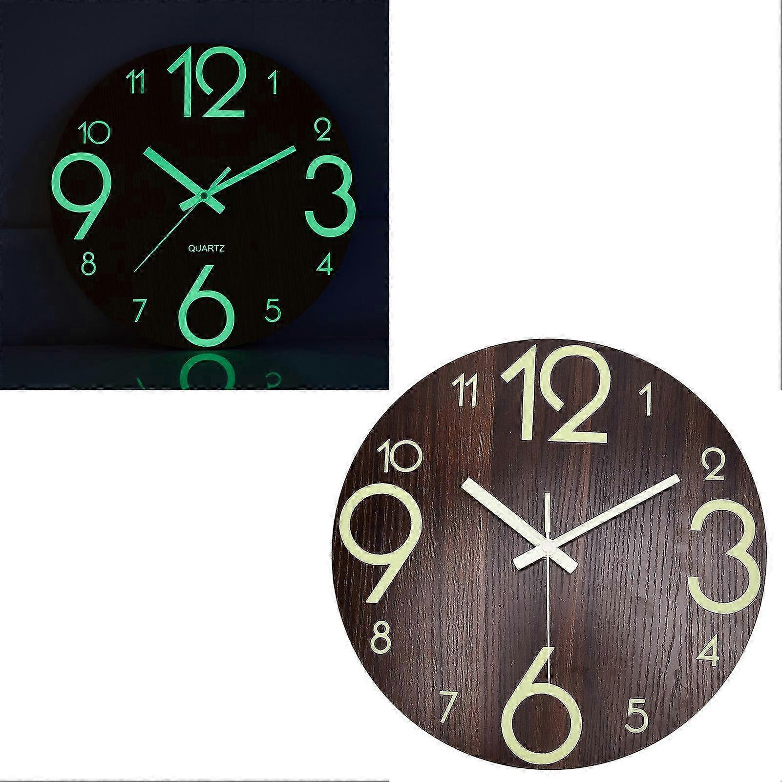 11.81in Luminous Wooden Wall Clock for Kitchen Office Bedroom Decor