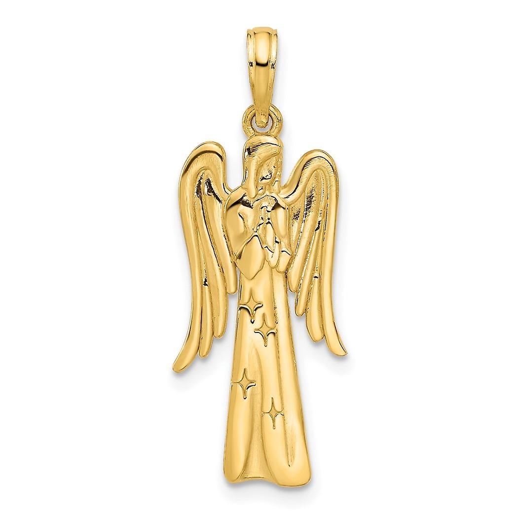 11mm 14k Solid Yellow Gold Fancy Religious Guardian Angel Charm Pendant Necklace for Women