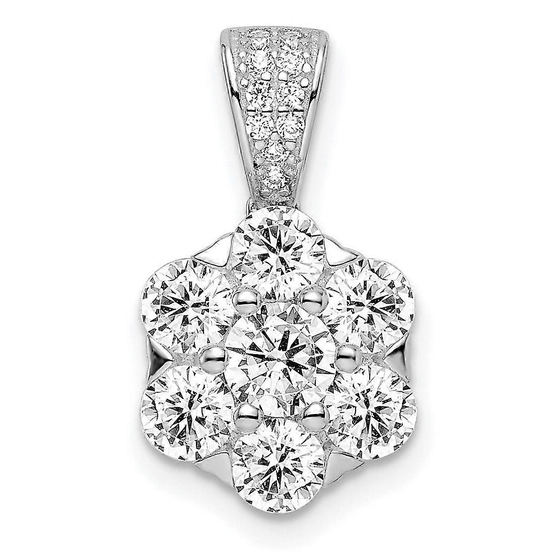 11mm 925 Sterling Silver Polished Rhodium Plated Cubic Zirconia Flower Pendant Necklace-Pendant for Women
