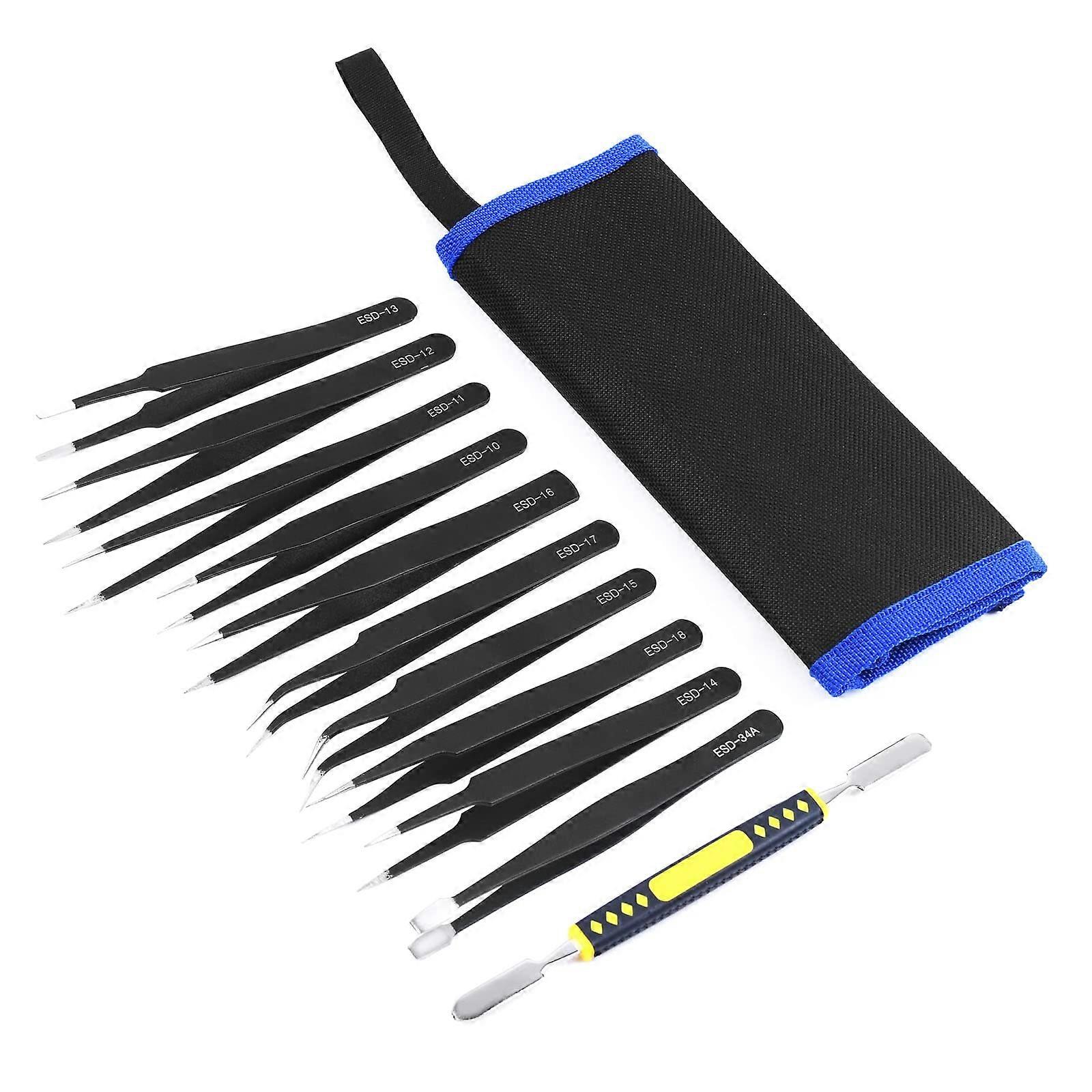 11PCS Anti-Static ESD Tweezers Set, Non-Magnetic Stainless Steel Curved Tweezers Set for Modeling, Electronic,Jewelry