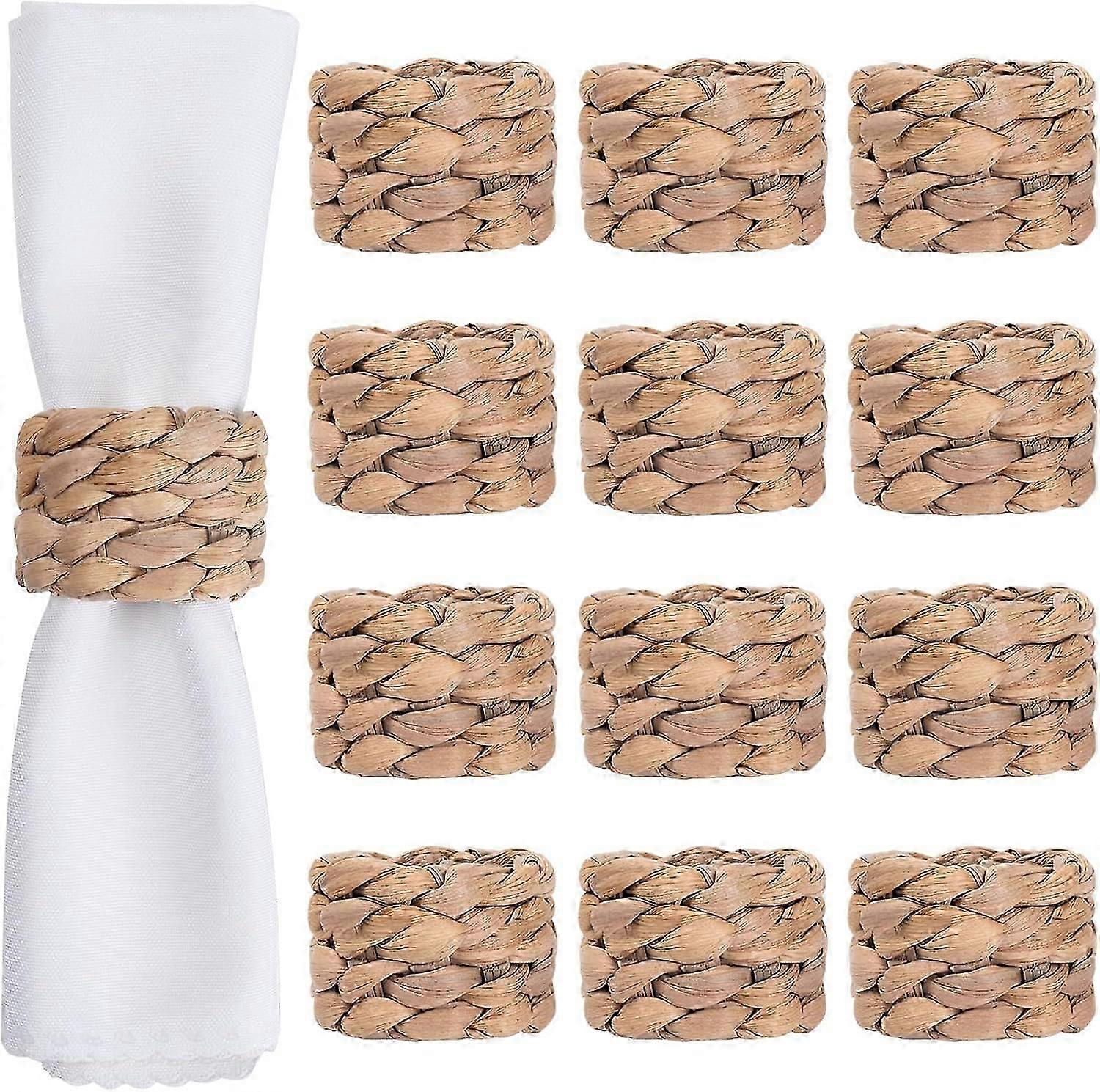 Set of 12 Farmhouse Napkin Rings, Handmade Natural Water Hyacinth, Rustic Table Decor for Thanksgiving Christmas