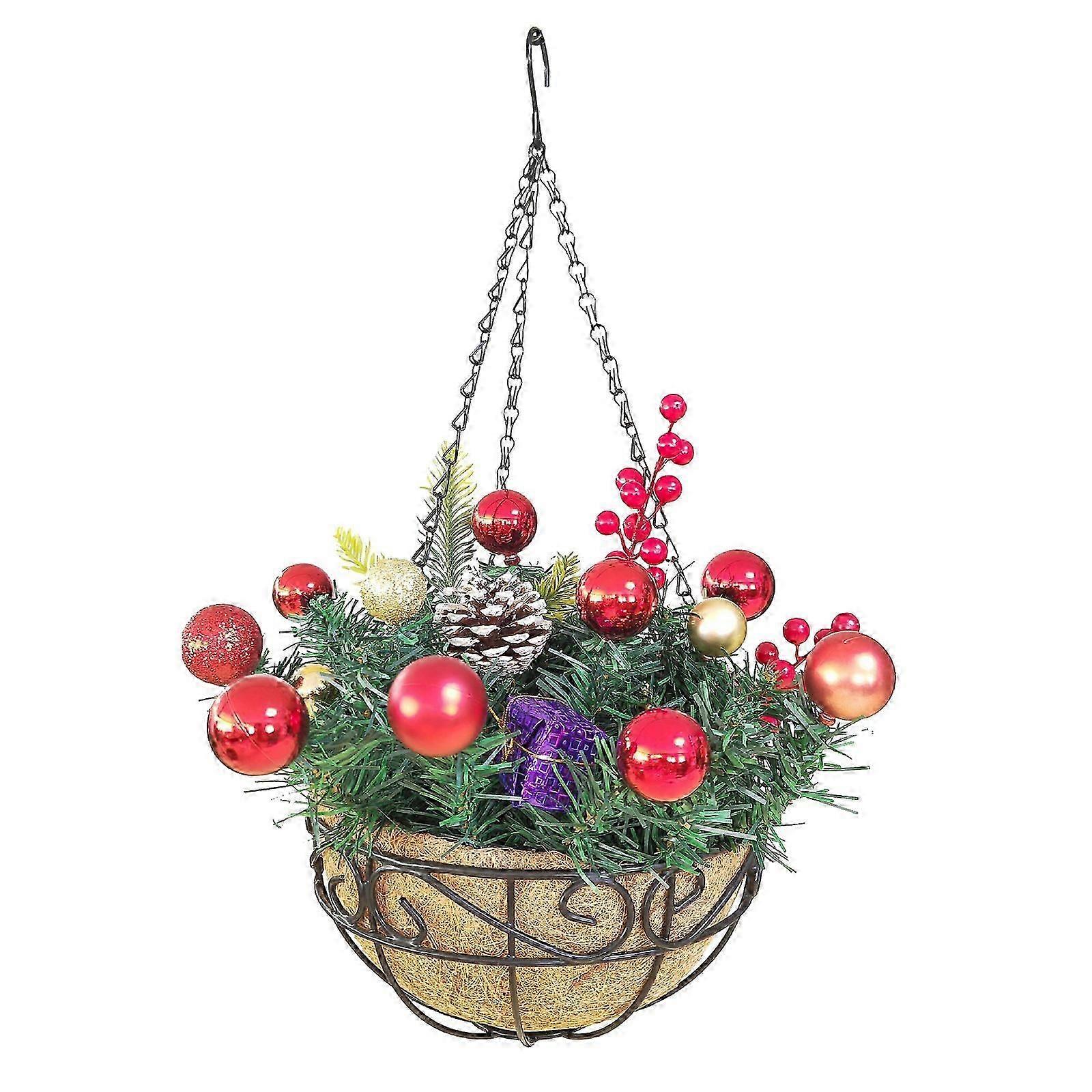 12 inch lace Christmas hanging basket, lace iron coconut palm Christmas hanging basket, simulated decorative flower basket, Christmas hanging basket,