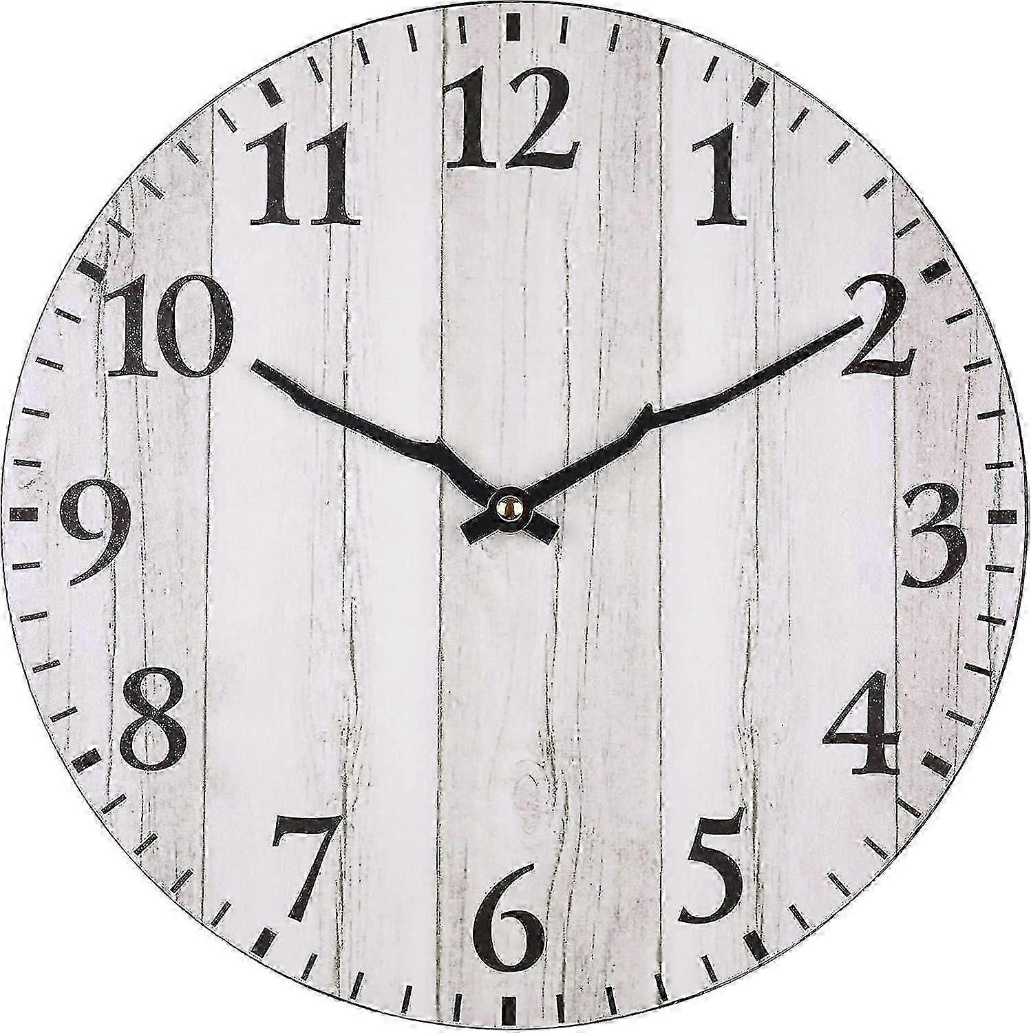 12 Inch Vintage Wood Grain Silent Non-ticking Battery Operated Round Wall Clock Boris