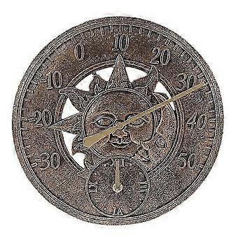 12 Inch Garden Thermometer Clock Outdoor Retro Wall Station Clock