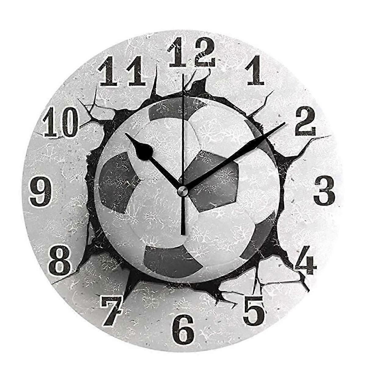 12Inch Football Wall Crack Clock Round Wall Clock Mute Quartz Table Clock Bedroom Living Room Home D