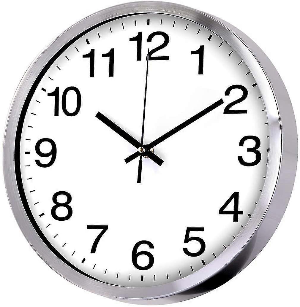 12-inch Wall Clock, Metal Stainless Steel Silent Wall Clock, Silver