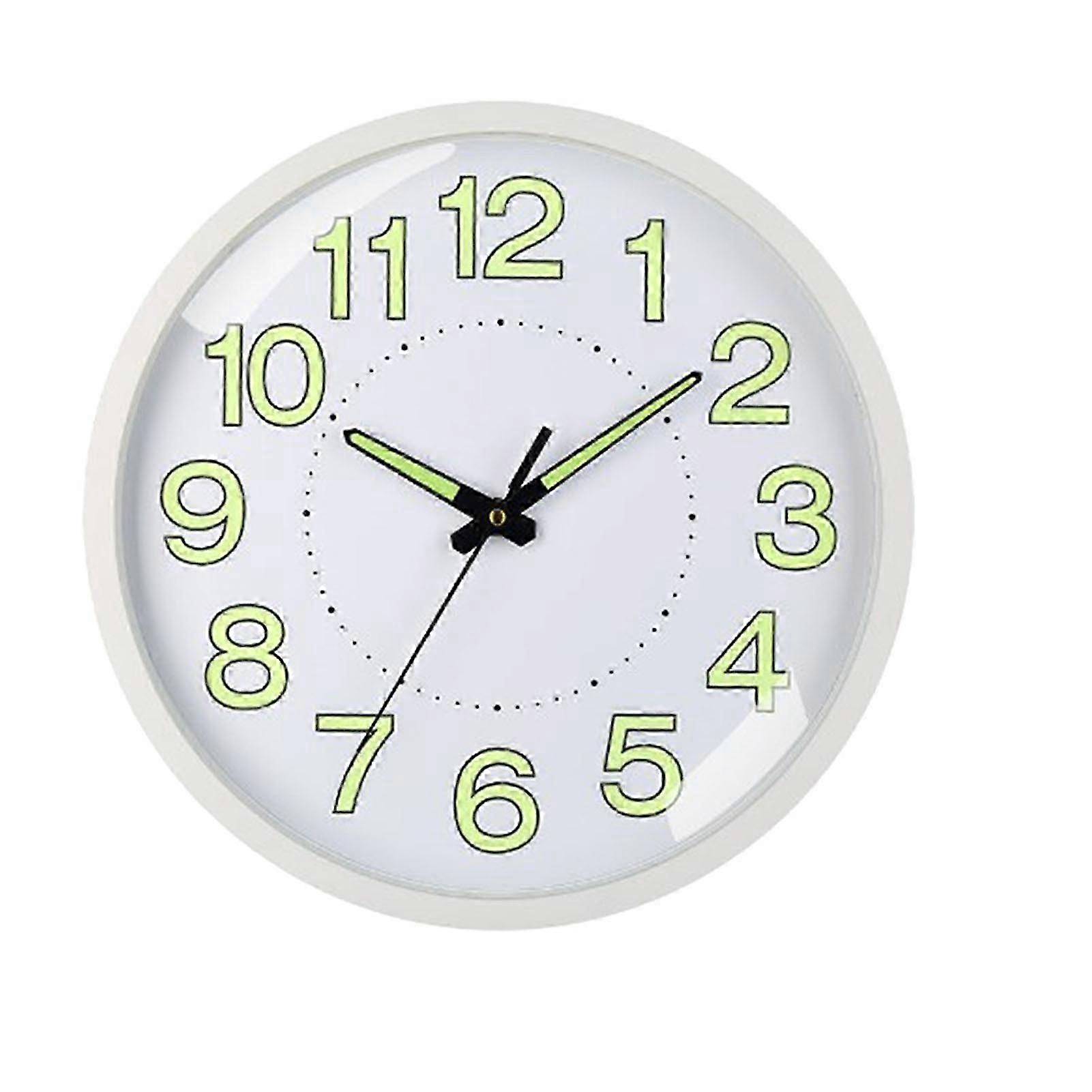 12 Inch 30cm Silent Wall Clock Luminous Numbers Quartz Movement Plastic Frame Bedroom Living Room Minimalist Design White Frame Durable Lightweight Mo
