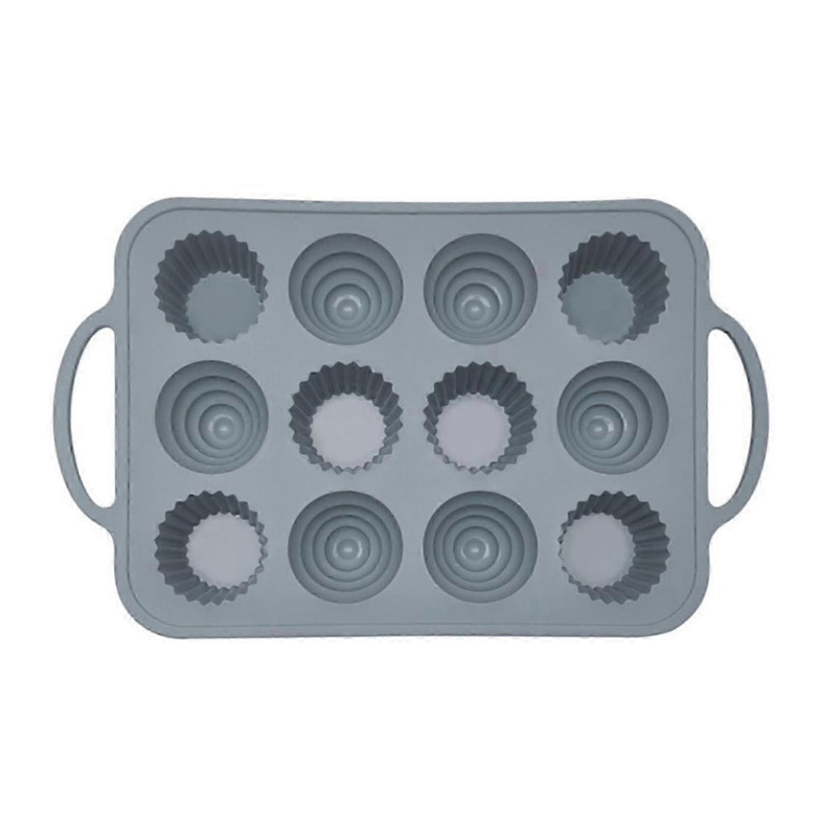12 Cups Cake Silicone Stencil With Handle Reusable Baking Cups For Tart Muffin--Grey
