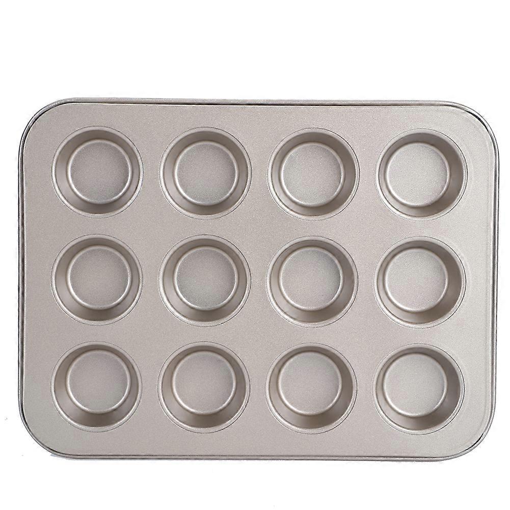 12 Cup Muffin Pan Cake Pans Non-Stick Round Cake Mold Home Kitchen Cook DIY Cooking Tools(Gold )