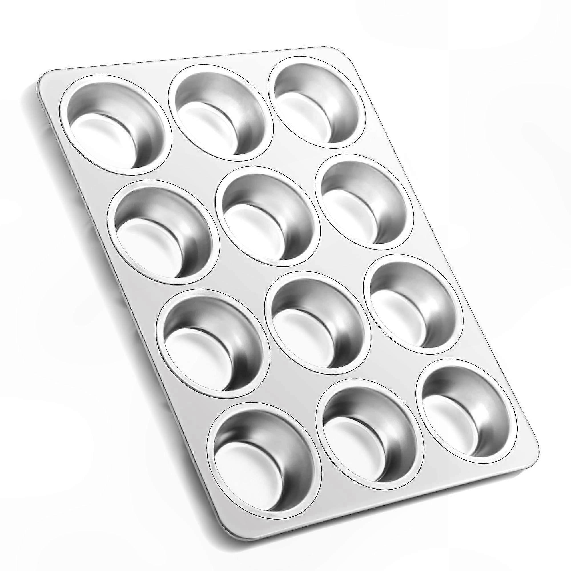 12-Cup Muffin Pan - Durable Non-Toxic Baking Sheet, 35 x 27 cm, Oven and Dishwasher Safe Stainless Steel