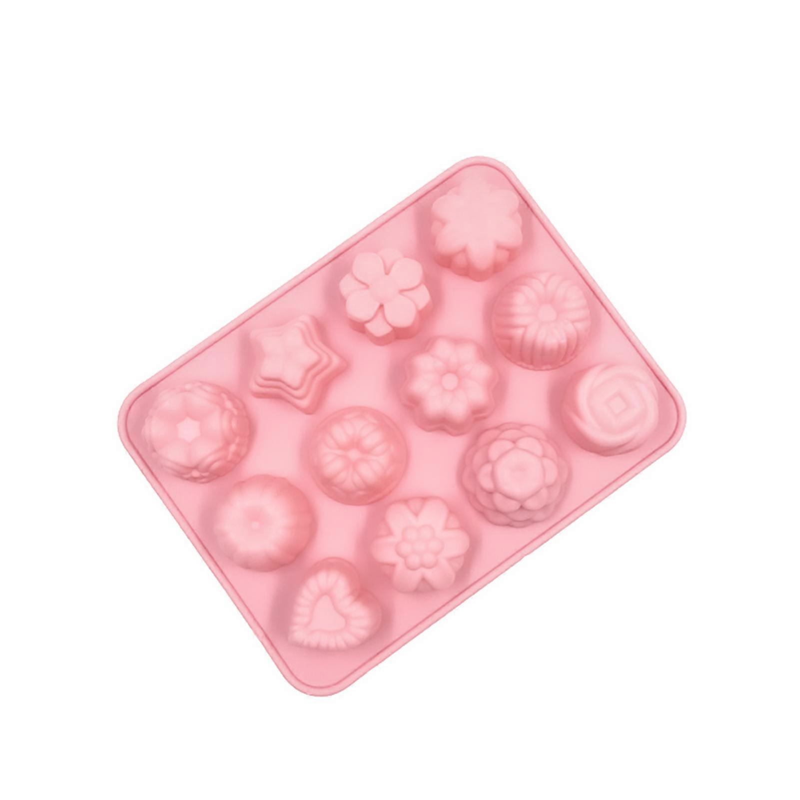 12 Grids Flower Shape Silicone Cake Mold Xmas Fondant Pudding Jelly Baking Mould