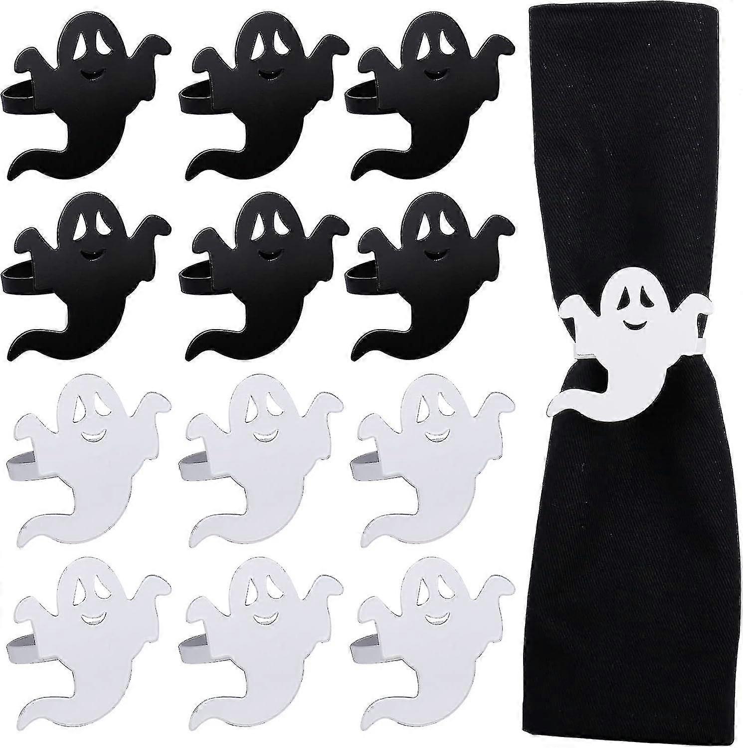 Set of 12 Ghost Napkin Rings, White and Black Ghost Napkin Buckle for Halloween Holiday Birthday Party Decoration