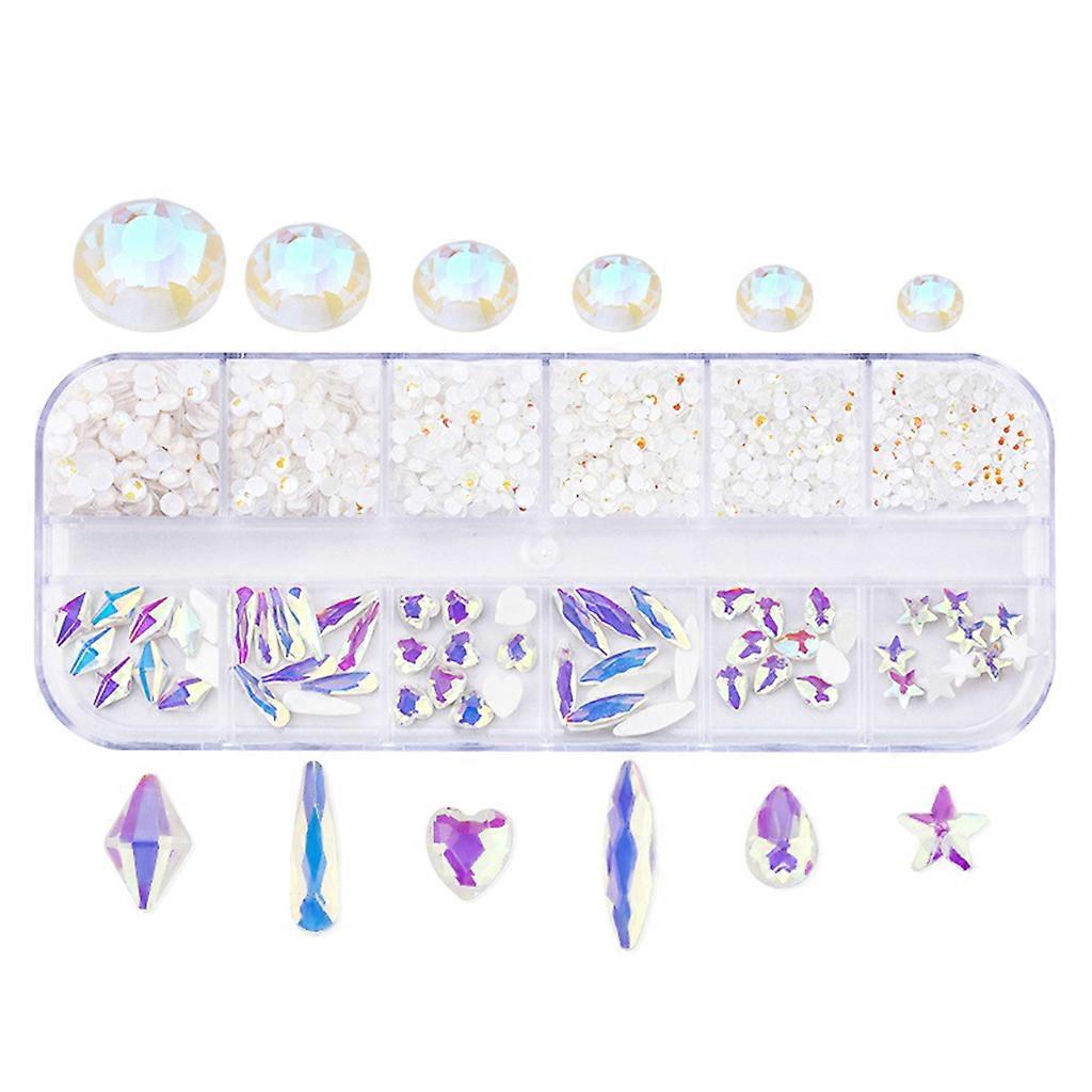 12 Compartment Glass Nail Art Decorations Multi-Shape Multi-Size Nail Ornament