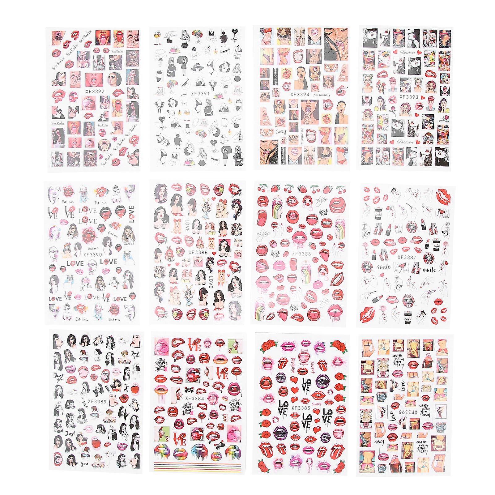 12 Sheet Lips Lady Pattern Nail Art Stickers Selfadhesive Nail Decals Decoration